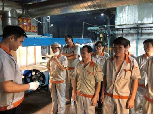 2019年9月17日,針對前期本田客戶反饋特黑GJBA軸套與制動轂周邊出現(xiàn)白色異物的情況,生產(chǎn)部特組織對GJBA擦修工序員工展開擦銹技能培訓,此次培訓由涂裝車間主任朱新華主講,分別結(jié)合實際案例、作業(yè)指導書、現(xiàn)場操作等形式展開培訓,以求達到更好培訓效果。