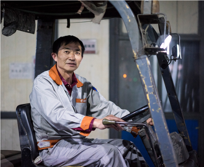 走過涂裝車間你總會聽見這幾句話,“師傅,麻煩叉一下這框毛胚”,“師傅,麻煩幫我叉一下這框產(chǎn)品到下掛處”,你就會看見劉師傅在嫻熟的操作下,鏟腳很準(zhǔn)地插進(jìn)鐵框下面的支架,提起,倒車,轉(zhuǎn)彎,開出車間,穩(wěn)穩(wěn)地放到指定地點(diǎn)上,整個過程一氣呵成。這就是我們的叉車師傅劉曙光。